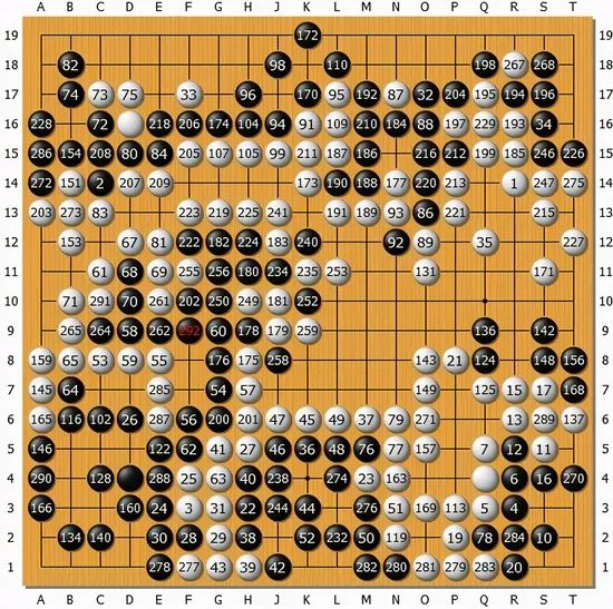 官子阶段双方实地非常接近,王雷的黑棋稍稍领先。但由于古棋规则“还棋头”的设定(棋局结束时,每比对手多一块棋,多贴还对手一子),古力白棋全盘一块棋,王雷有四块,所以王雷还要还古力3子,算上还棋头,古力白棋基本胜局已定。