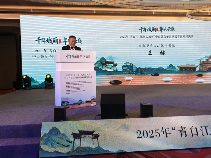 成都青白江区委书记王林在致辞中表示:“今天的青白江同时蕴含传统与开放两种特色。本次赛事成功搭建中日韩文化交流与文明互鉴的重要平台,生动诠释围棋作为东方智慧结晶的时代价值,展现当代女性在竞技体育领域的卓越成就和独特风采。