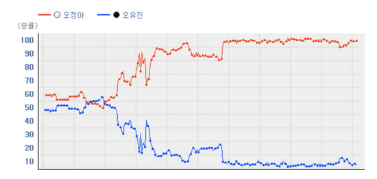 与女子排名第6的金仑映四段的战绩是2胜4负,与女子排名第18的金恩善5段的战绩是9胜1负。有趣的是,对金仑映是4连败后是2连胜,对金恩善则是先9连胜后1负。