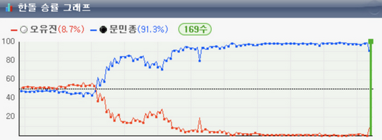 创造大赛最多连胜纪录的文敏钟四段表示:“没想到会赢得这么多的胜利,感到很光荣。即便我今天输了,但后面还有两名棋手,所以就轻松地下了。虽然我不经常和哥哥们联系,但是比赛开始之前大家给我加油给了我很大的帮助。”