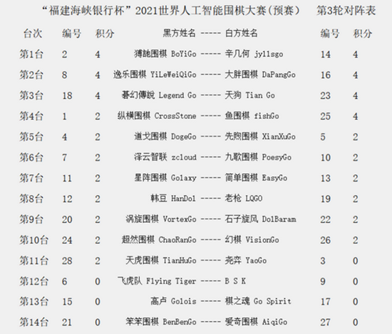 第三轮星阵对简单,韩豆对老枪,超然对幻棋,泽云智联对九歌堪称生死之战,负者接近被提前淘汰。辛几何、逸乐、天狗、鱼围棋等力争奠定积分优势,最好能提前上岸。