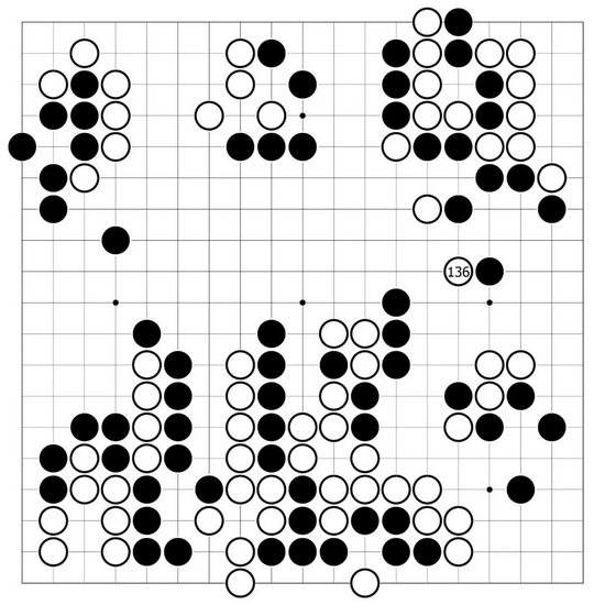 全场最后结束的一盘老枪对涡旋的比赛鏖战至329手下出了三劫循环,这一人类比赛常被判为和棋的特殊棋型因AI执行更加严格的禁全同规则而分出高下,即将率先造成全局同形的涡旋被迫认负。