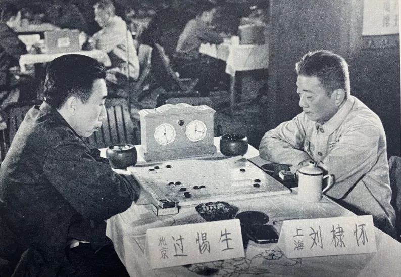 《围棋通讯》没有照片版面,此图摄于“刘过六番棋”的十年之后——1959年“南刘北过”在第1届全国运动会中作围棋冠军归属之争。相比之前在中国棋坛留下印记的“南王北顾”(王子晏、顾水如)与“南刘北顾”,刘棣怀和过惕生这一组好对手幸逢中国围棋比赛建设的萌芽期,得以以频繁的交锋证明名号不虚。