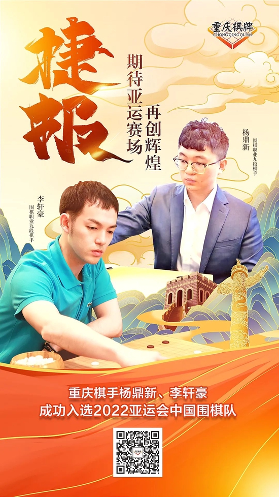 事实上,早在12年前,亚运会上就已出现重庆棋手的身影,2010年广州亚运会,重庆棋手古力曾代表中国围棋男队全力征战,此次杨鼎新和李轩豪的入选,再次证明了重庆围棋的实力,更将有力助推重庆围棋竞技改革发展。