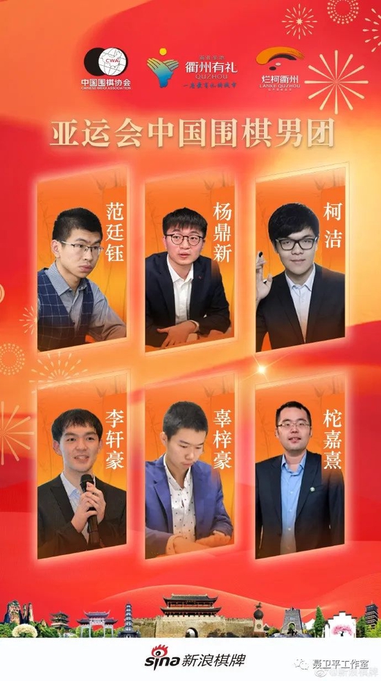 中国男队阵容:柯洁、辜梓豪、杨鼎新、范廷钰、李轩豪、柁嘉熹