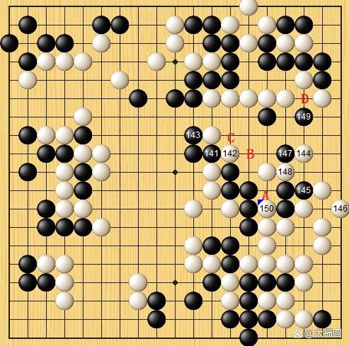 黑149刺,白150凶狠地冲了一手。现在,白棋需要做出决断。ABCD,如果你是申真谞,会做出哪一个选择?