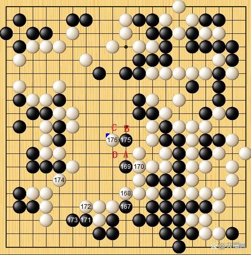 黑163和白164,基本上见合。黑165,又打了一手棋。黑175小飞,白176碰。这应该是本局的最后一道题了吧?