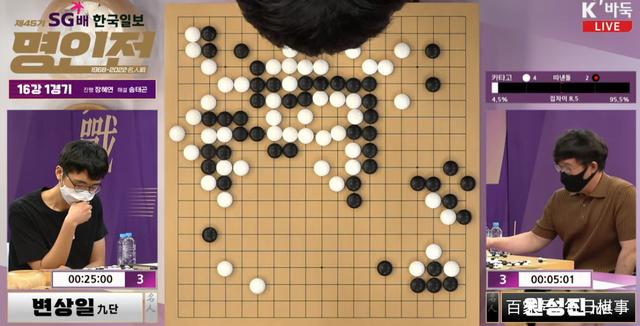 终局前发生戏剧性一幕,眼看小胜在即的卞相壹,左边一路扳的随手,让他与胜利失之交臂。而几手棋前他才刚刚幸运打赢上方的冠军劫争。