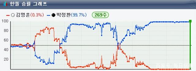 虽然从AI胜率上看朴廷桓本局大优的时间很多,但事实上在很长一段时间双方差距非常细微。这样金明训最近就连续在加德士杯和YK建设杯被朴廷桓所阻,而YK建设这边朴廷桓和申真谞的最后一轮对决大概率会成为决赛名额争夺战,如果不出现姜东润在最后两轮连败这种情况的话。