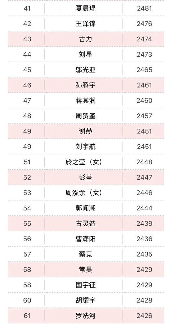 孔 杰 2498 钱宇平 2483