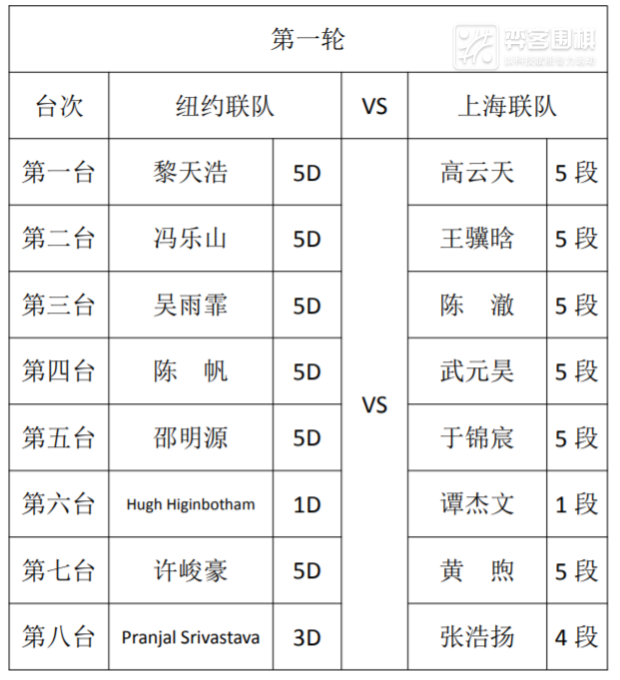 本周将进行前两站比赛,北京时间26日20:30进行开幕式,随后进行揭幕战,纽约联队将对阵上海联队。27日将进行第2站比赛,由中国台湾的佛光大学对阵上海财经大学。请关注弈客围棋为您带来的后续报道。
