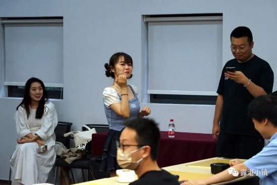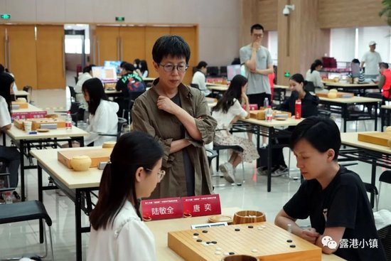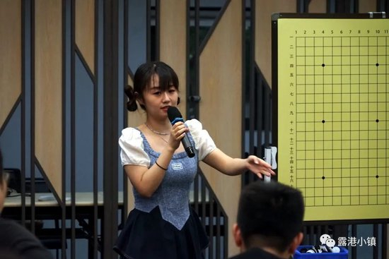 另一位是人气主播战鹰初段,因为她的参赛,上海棋院大门外难得出现人头聚集的一幕——通常是隔壁上海电视台特有的“节目”。经过协调,今天下午上海棋院专门提供了场所,让“鹰酱”主持了一次棋友会特别活动,世界冠军周睿羊和战鹰分别带队下了一盘联棋,纯粹享受相聚和交流的快乐……