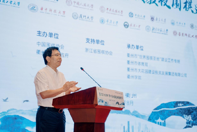 东南阙里,三衢儒风;围棋仙地,名家云集。8月11日,第三届“烂柯杯”全国高校教授围棋邀请赛开幕式在衢州欣博悦大酒店举行。本次比赛由中国围棋协会、中共衢州市委衢州市人民政府主办,浙江省围棋协会支持,衢州市“世界围棋圣地”建设工作专班、衢州市体育局、衢州市大花园建设投资发展集团有限公司、衢州学院承办。本次比赛共有18所985高校参加。