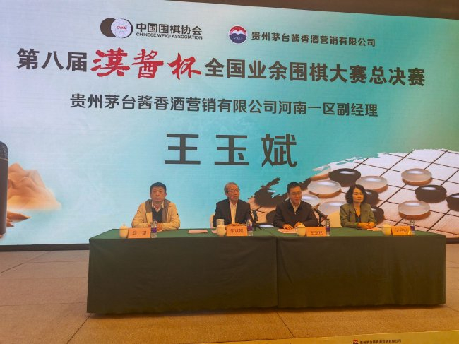 第八届“汉酱杯”业余围棋总决赛开幕式于10月31日上午在河南郑州举行,贵州茅台酱香酒营销有限公司河南一区副经理王玉斌致辞。
