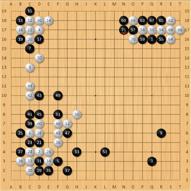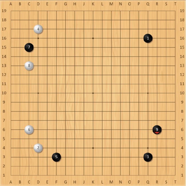 布局阶段,行至第9手,黑棋连挂白棋两角脱先,回防大飞守角,把进攻主动权交给白棋。朴廷桓必定是针对范廷钰稳健、不好战的棋风有备而来。