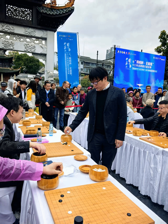 11月2日,2025年“阳明杯 ·北极熊”中日韩围棋精英邀请赛“棋聚甲秀·承艺黔风”城市围棋冠军群弈会在甲秀楼举行,为现场观众呈现了一场技艺与文化交融、智慧与热情碰撞的围棋盛宴。