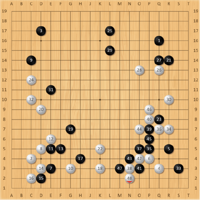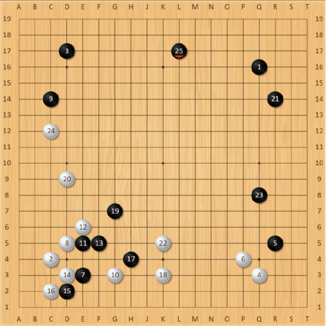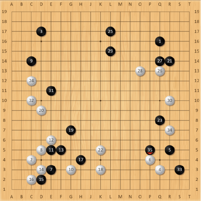 本局王星昊执黑先行。布局行至黑25手,黑白都搭起了自己的阵势,感觉互相熟悉的双方都准备好了一场持久战。