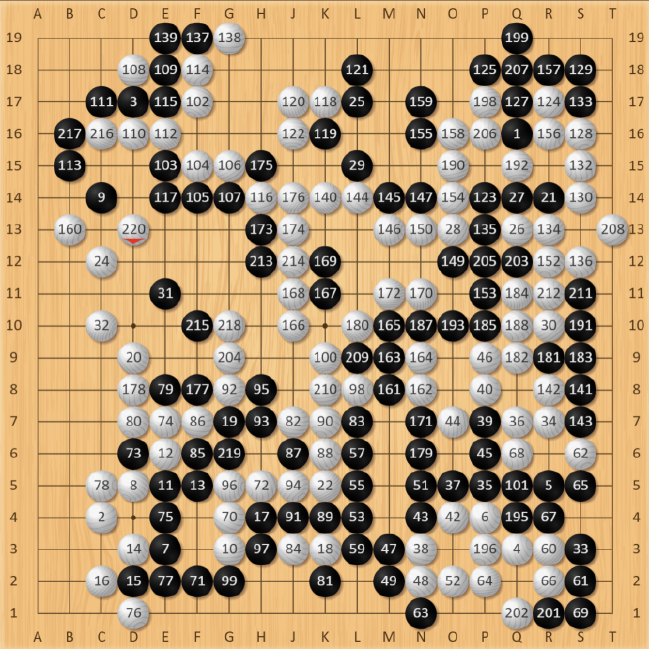 后续双方棋手虽然又继续下了近百手,但丁浩依靠自身强大的控盘能力,牢牢地掌握住优势,最终至白220手,王星昊发现大势已去后,投子认负。