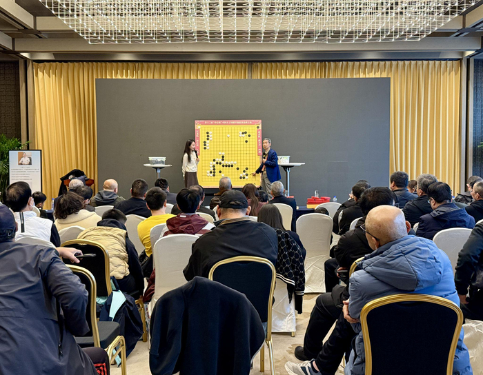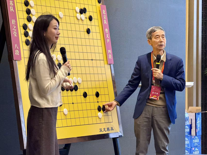 赛事进行期间,中国围棋协会名誉主席王汝南与美女职业棋手王香如为当地棋迷进行大盘讲解。
