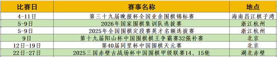 2026年1月围棋赛程:天元赛围甲联赛陆续进行 Jan 5, 2026, 8:32:00 PM • 新闻 • 阅读 1,005 2026年01月05日 新浪体育综合 近日,中国围棋协会发布了2026年1月围棋国际赛事、全国赛事赛程,国家集训队选拔赛、以及定段赛英才名额选拔赛同期进行,中国围棋天元赛打响,围甲联赛进行地14-15轮。 具体赛程如下: