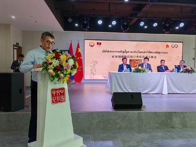 老挝教育与体育部高等体育司司长西占·吉达版亚亲自为老挝围棋协会授牌,标志着老挝围棋事业迈入规范化、系统化发展的新阶段。随后,西占·吉达版亚在致辞中表示,目前老挝围棋协会的工作已从中央延伸至各省,未来将逐步推动全国性围棋赛事的举办。他希望协会执行委员会成立后,全体同仁能够严守规章制度、凝心聚力、团结协作,推动老挝围棋运动实现更高质量的发展。同时,他向所有赞助单位表示衷心感谢,正是各方的鼎力支持,才让本次成立仪式及相关赛事得以顺利举办。他强调,围棋现已成为老挝40个正式体育项目之一,老挝教育与体育部高等体育司将持续加大对老挝围棋协会的支持力度,助力老挝围棋事业蓬勃发展。